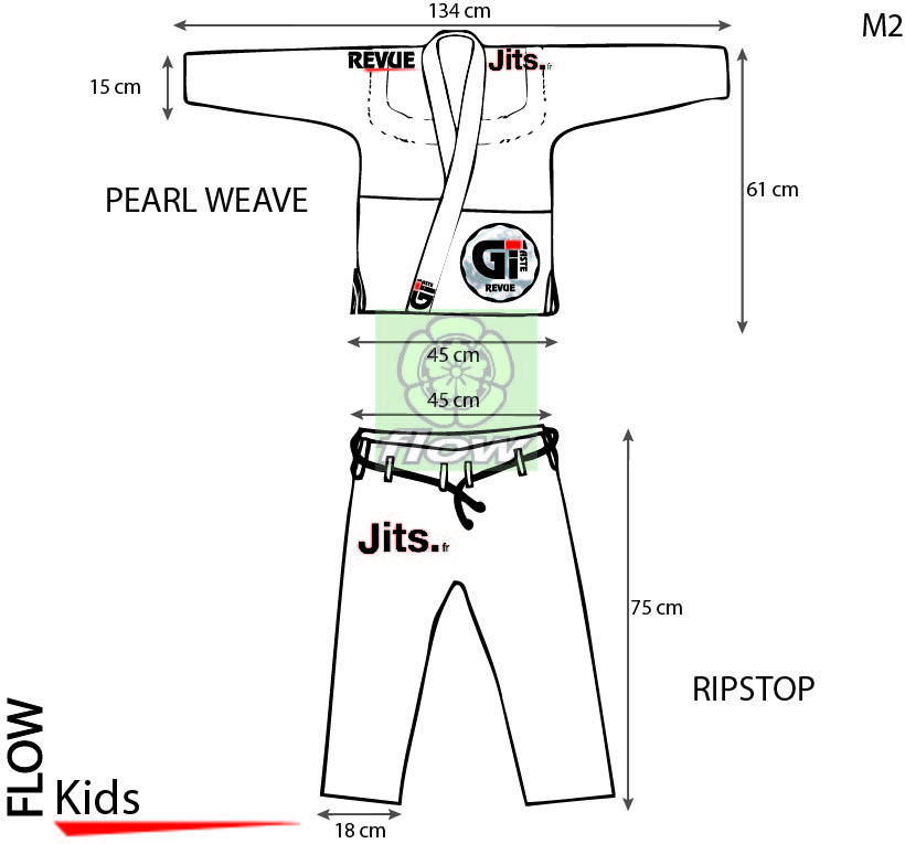 La veste est légèrement trop grande à notre goût mais cela peut sans doute varier en fonction de la morphologie des pratiquants (Tidiane pèse 28kg pour 1m30). Cette dernière n’est ni trop large ni trop ceintré. Bien taillée quoi.