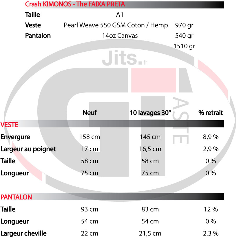 Le kimono taille parfaitement pour un A1. Malheureusement au bout de 8 mois de test et malgré des lavages toujours à 30°, les manches et la longueur du pantalon ont beaucoup rétréci. Pour en avoir parlé longuement avec le patron de la marque, j’avais reçu un sample et des ajustements ont été faits. Sinon le kim est parfaitement coupé et à aucun moment on ne ressent de gêne quelconque ni au niveau des jambes dans les mouvements de spider ou DL ni au niveau des épaules.