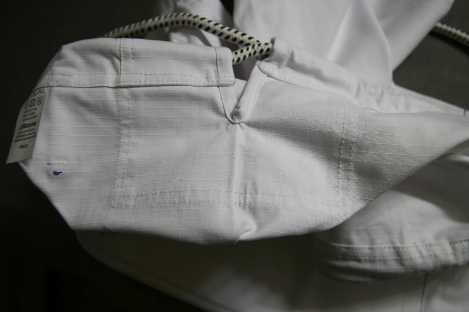 Cela m’était déjà arrivé sur d’autres kimonos, mais tout de même un point un peu négatif sur ce gi. Mizuno m’a confirmé que ceci à été réglé sur les nouveaux modèles, pour d’autres retours sur l’épaisseur qui serait également un peu gênante.