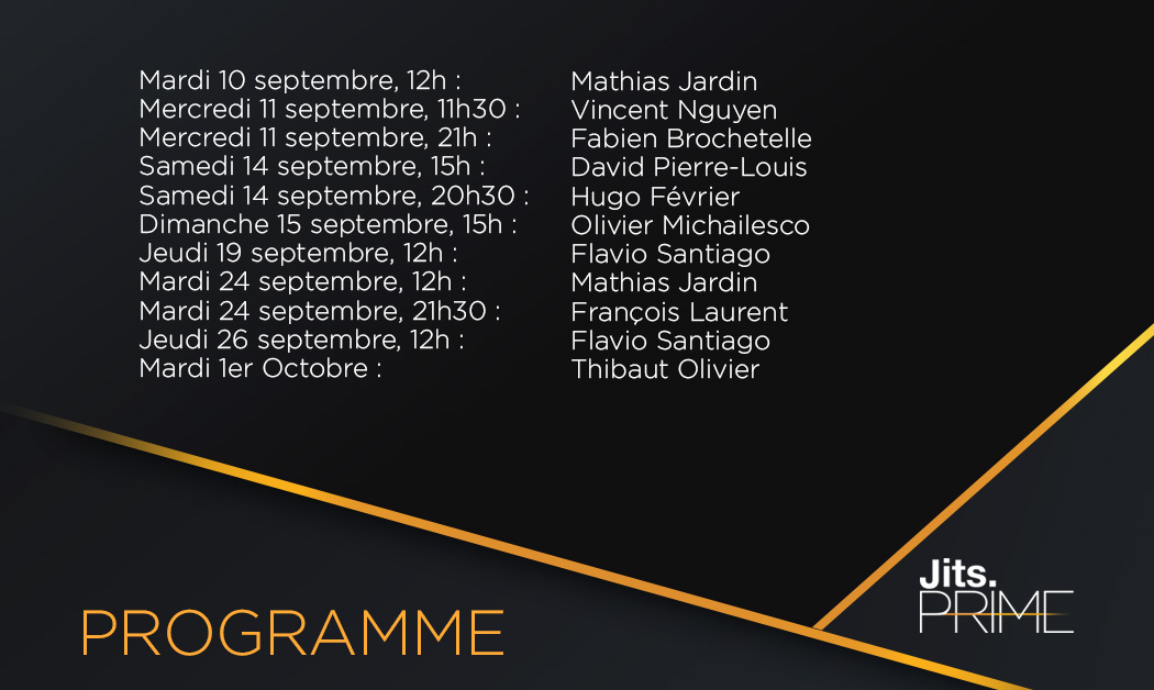 Voici ce qui vous attend sur Jits Prime pour le mois de septembre (horaires exacts susceptibles de changer) :