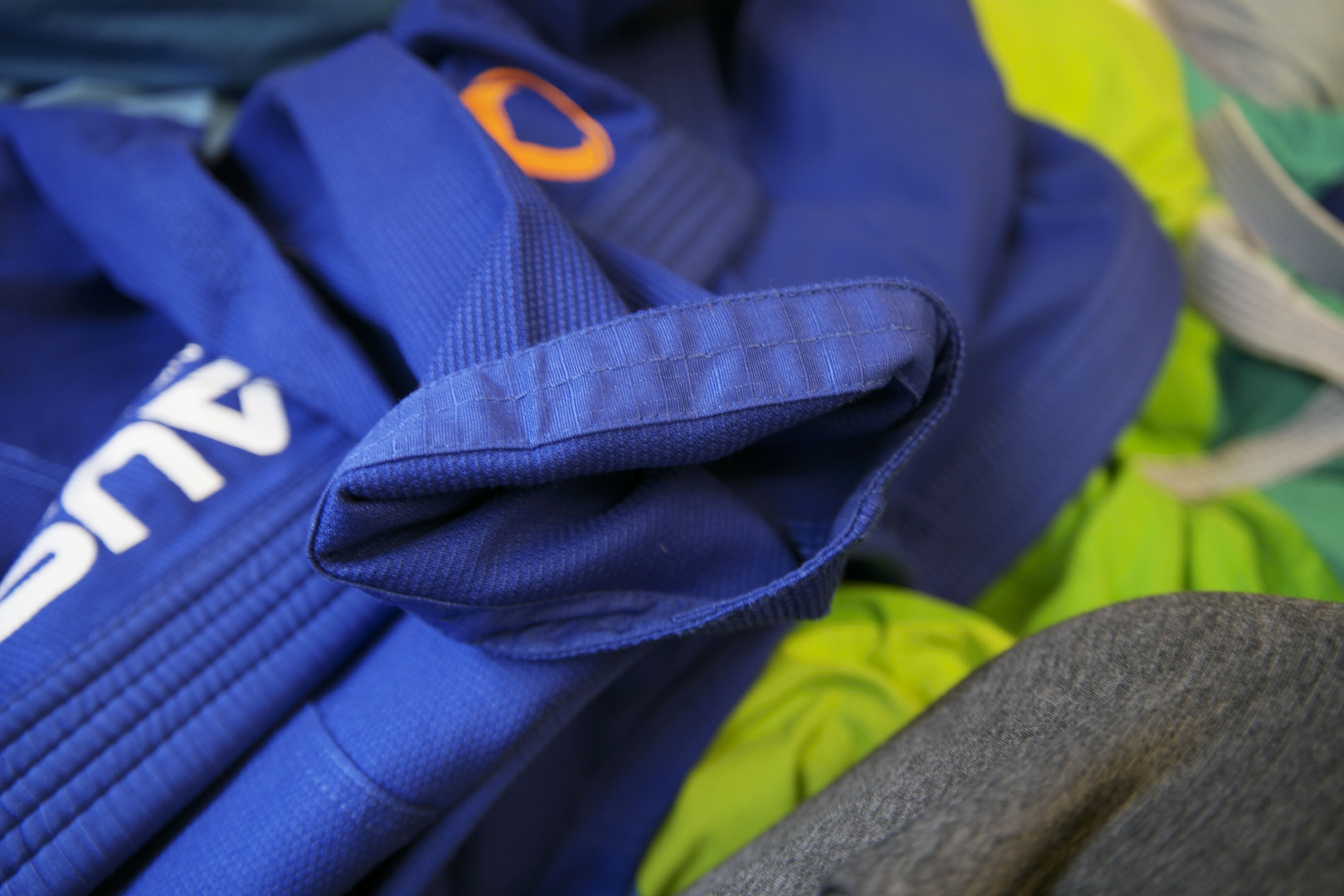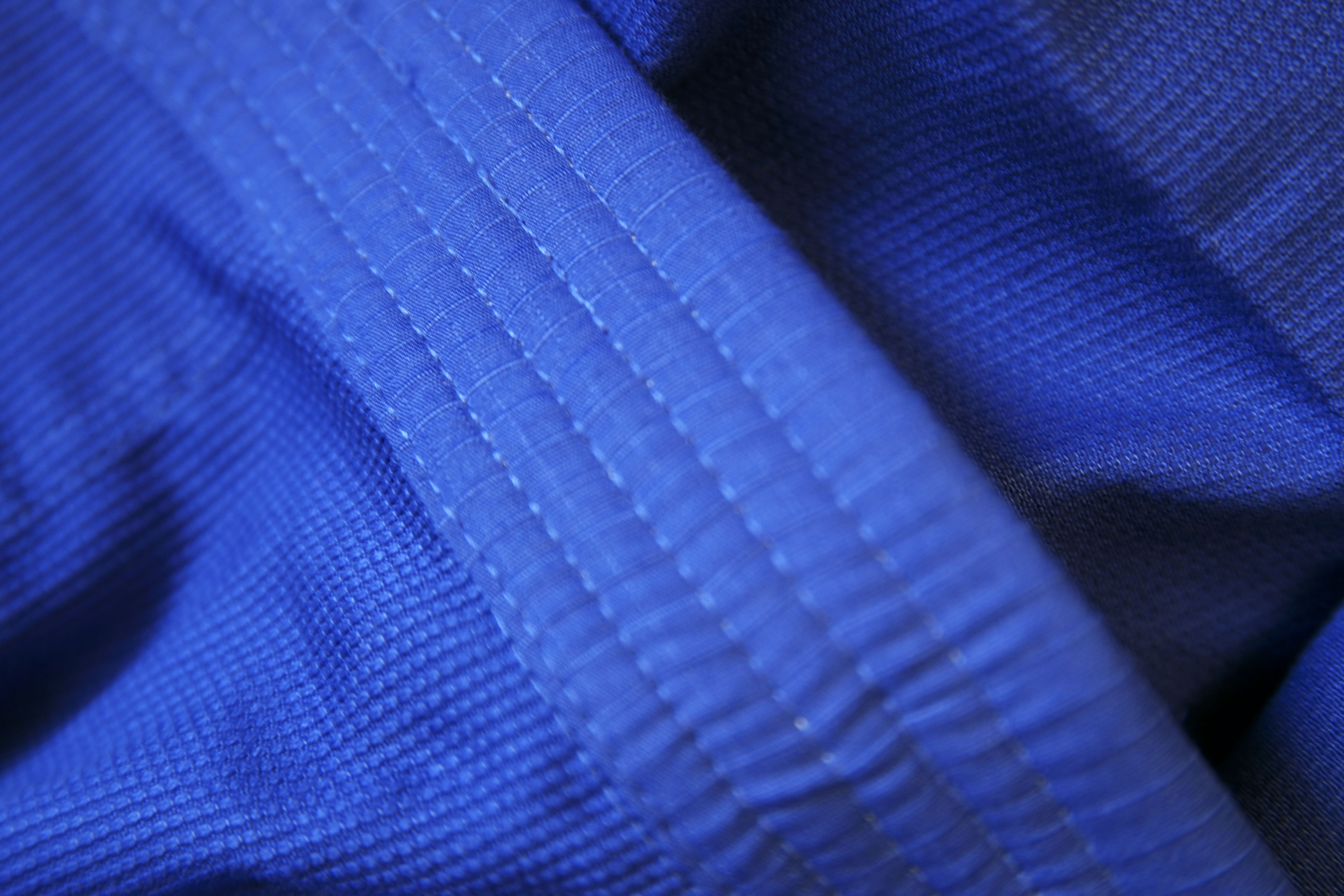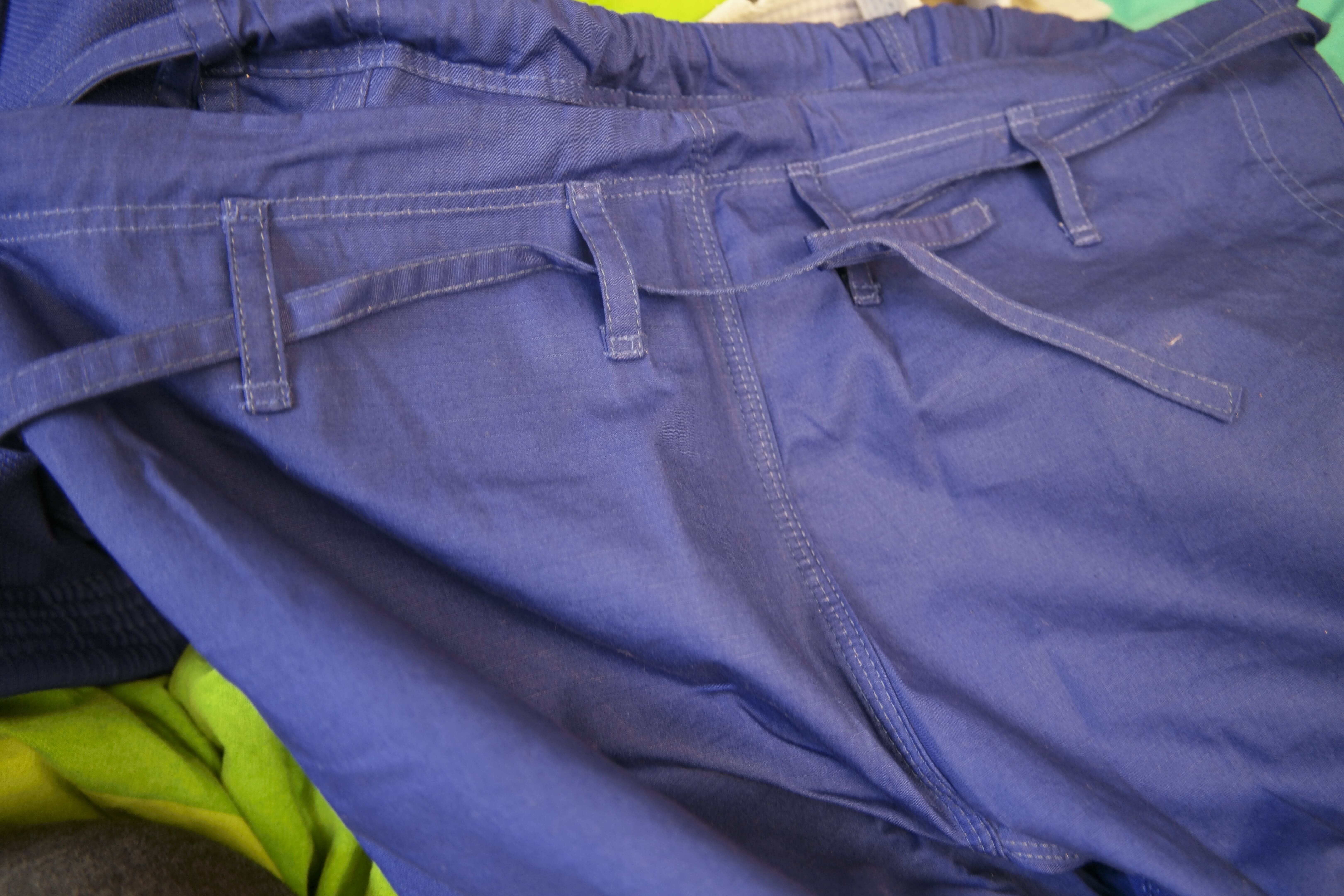 J’ai surtout senti le rétrécissement au niveau largeur, aussi bien à la fermeture de la veste que pendant les mouvements dans le pantalon. Je dirai que cette coupe spécifique serait plus destinée à des personnes moins robustes que moi. Autre petit défaut, légère usure du bleu à différents endroits au niveau coutures, après 10 entraînements et lavages. Il est conseillé, à l’achat d’un kimono de couleur, de le laisser tremper une nuit dans de l’eau froide avec du vinaigre blanc pour fixer les couleurs (ceci est une astuce de grand-mère).