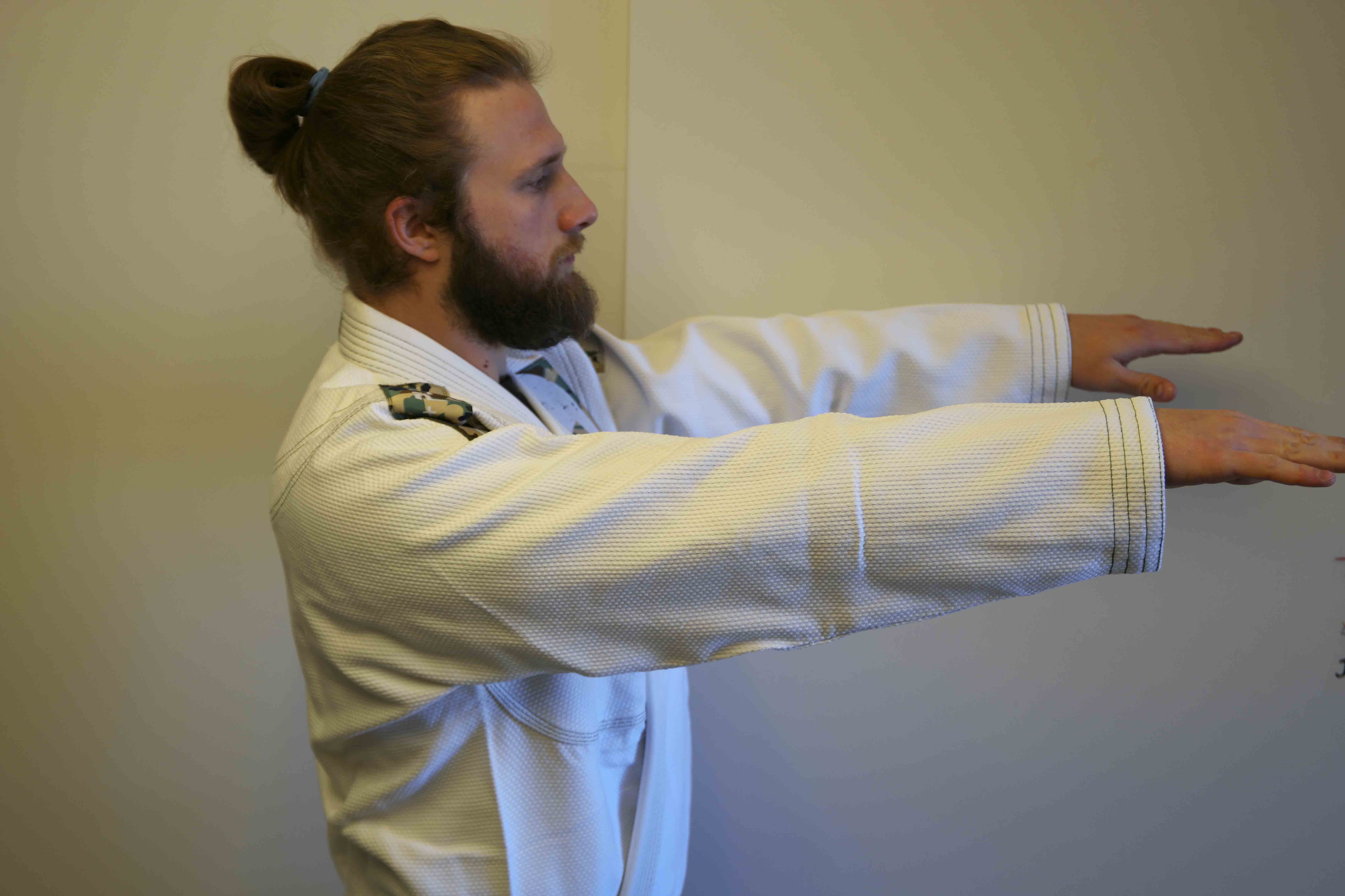 Une coupe assez large très bien pour les entrainements. Néanmoins la dureté des patches se fait légèrement sentir au début. Heureusement, ils s’assouplissent au fur et à mesure des lavages. Le pearl weave assez particulier est un petit peu plus rêche sur l'extérieur du kimono, mais ça, ce sont les personnes avec qui vous vous entraînez qui vont le sentir. Donc ça va !