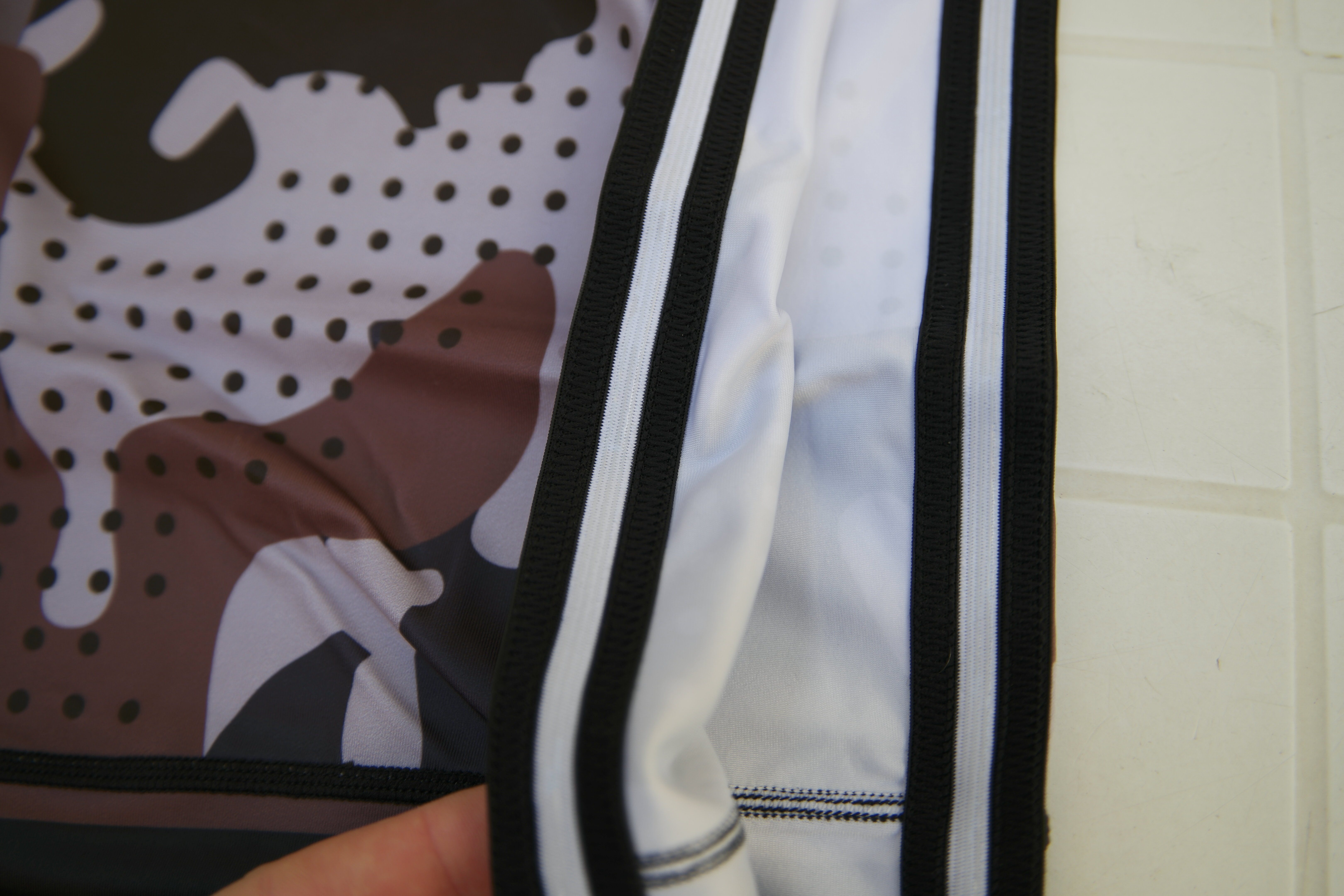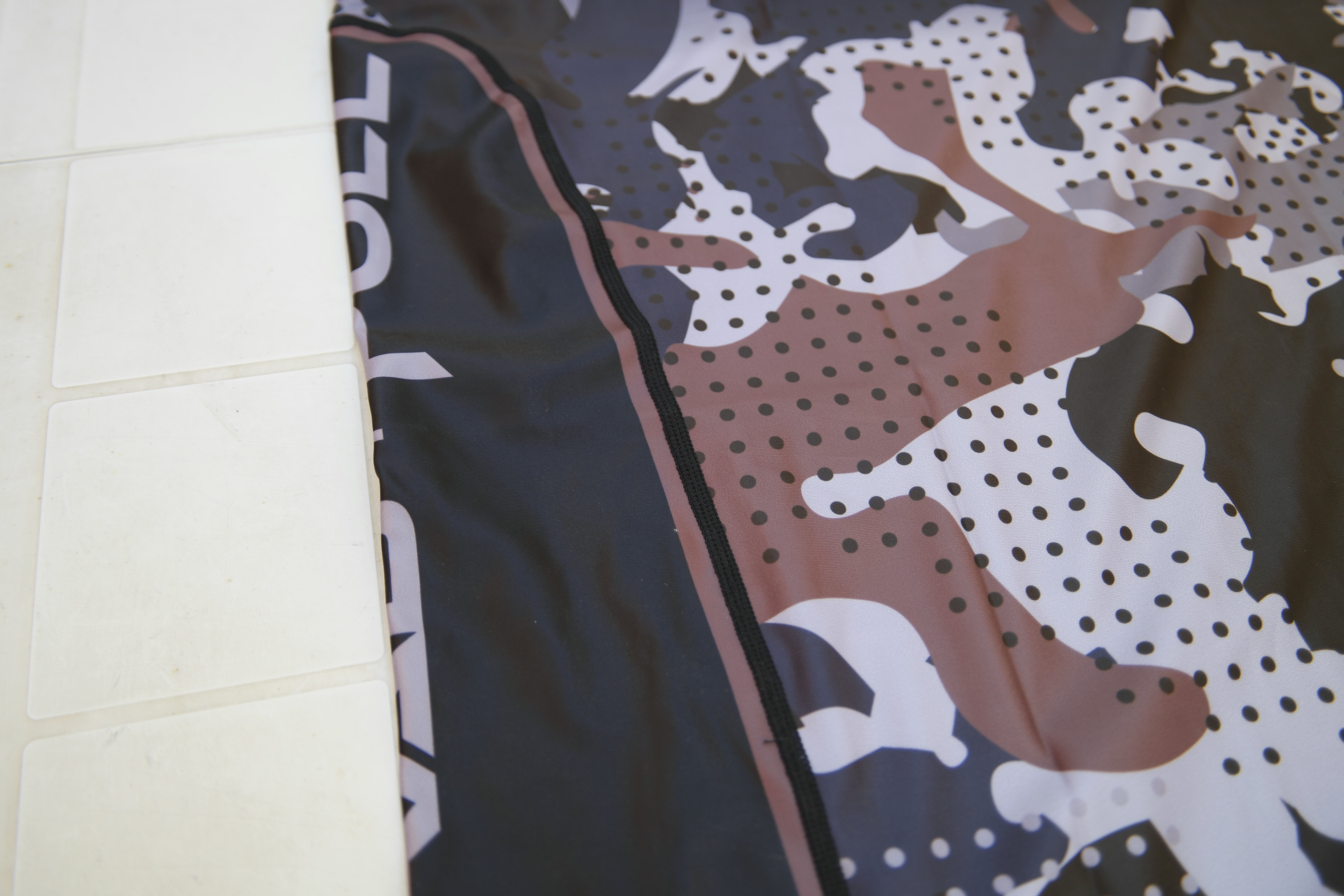 Le matériel utilisé pour faire ce rashguard est du lycra. Il semble assez épais au premier abord, mais une fois testé, je dois admettre qu’il fait effet de seconde peau. Le design est sublimé, c’est-à-dire que les images ont été directement imprimées sur le tissu. La méthode la plus répandue pour ce genre de produits.