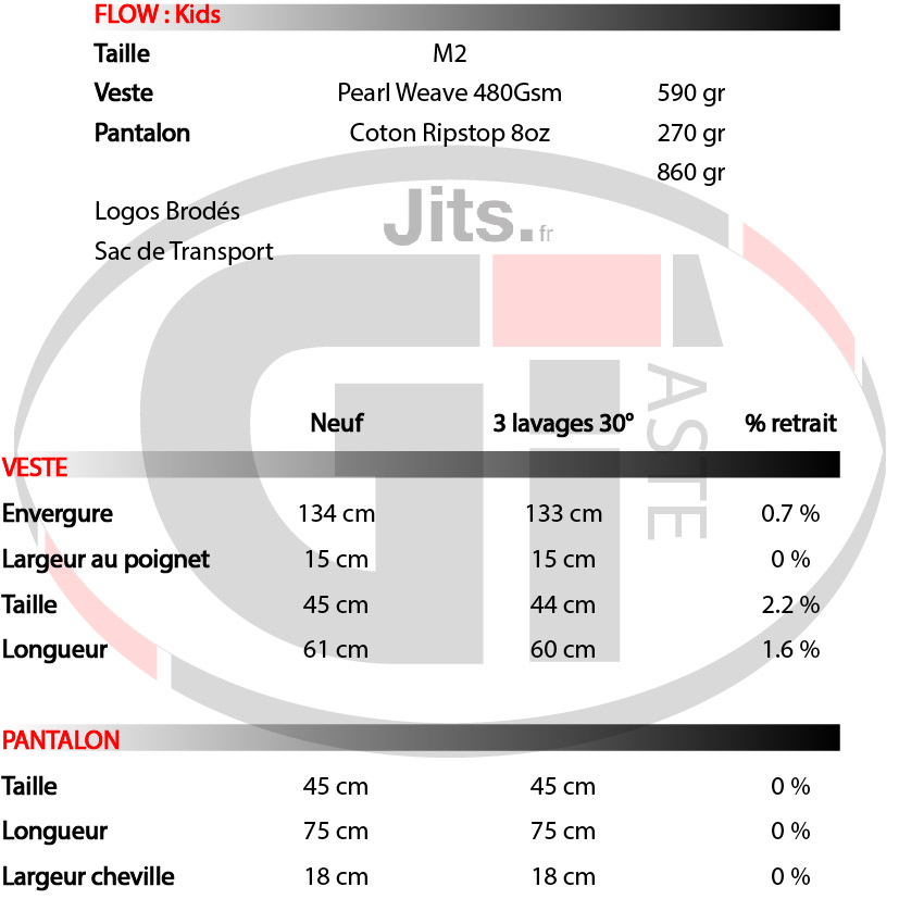La veste est légèrement trop grande à notre goût mais cela peut sans doute varier en fonction de la morphologie des pratiquants (Tidiane pèse 28kg pour 1m30). Cette dernière n’est ni trop large ni trop ceintré. Bien taillée quoi.